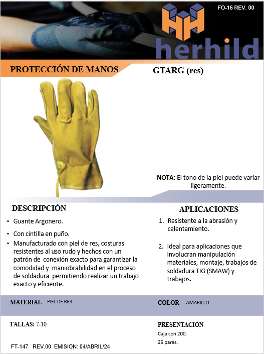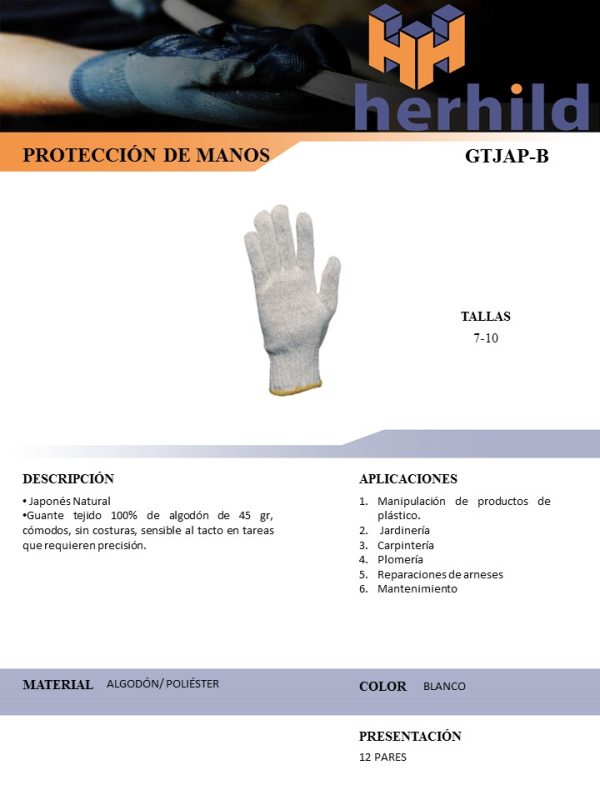 Guante tejido tipo japonés natural, para áreas que requieren precisión.