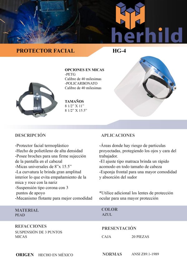 Protector facial con cabezal y suspensión con ajuste de matraca (no incluye mica)